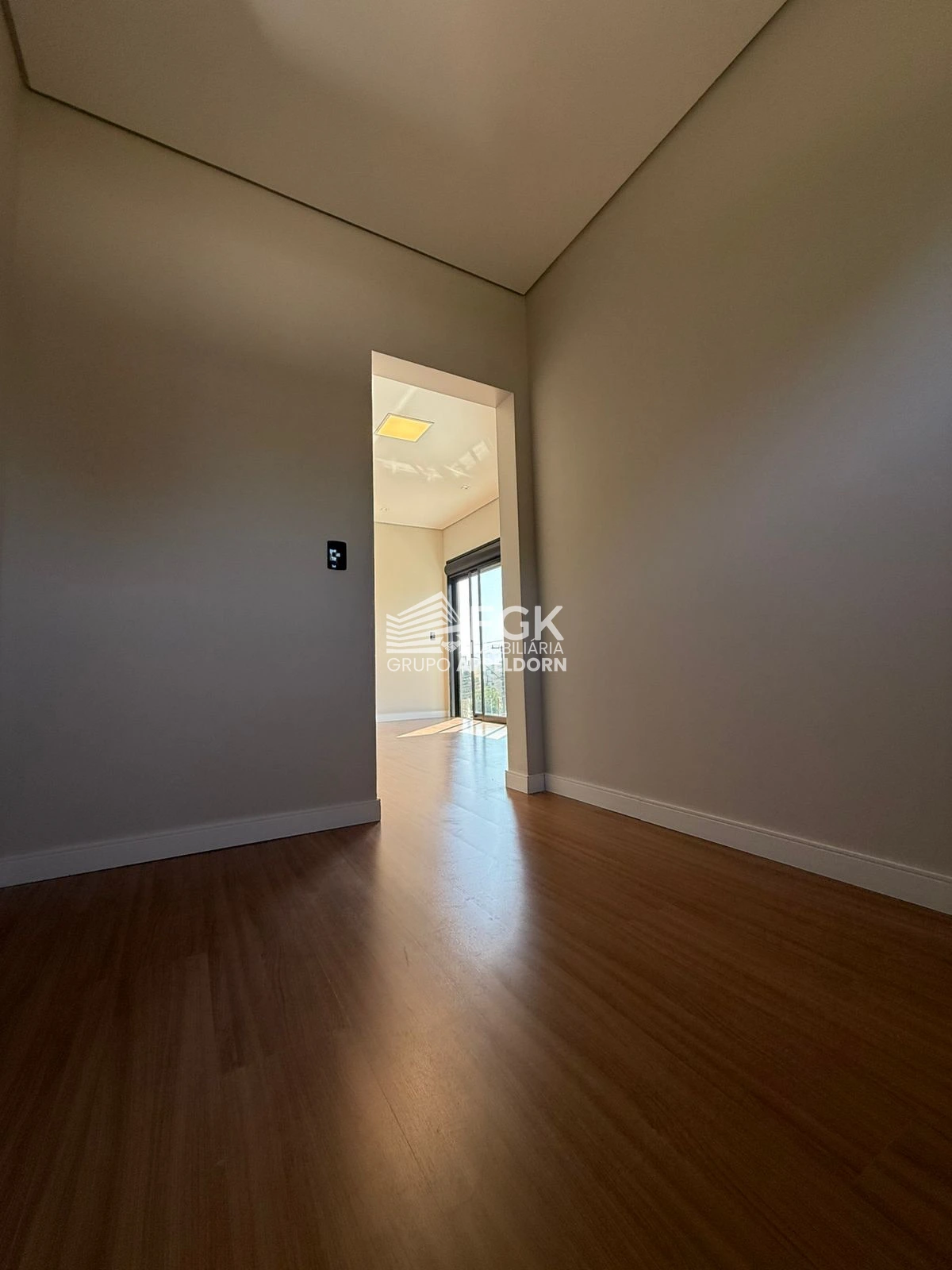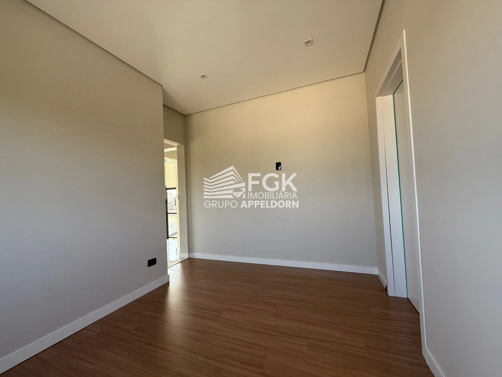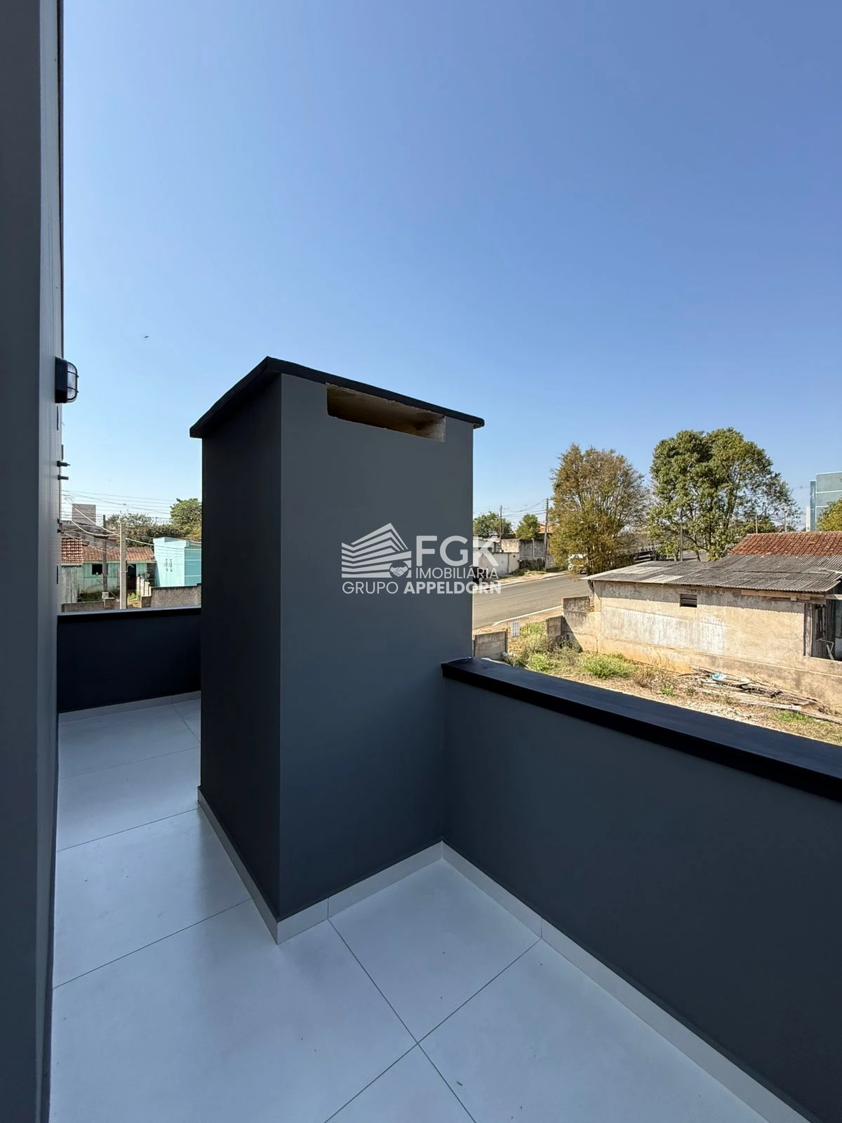 - Sacada com guarda corpo de vidro e persiana elétrica integrada