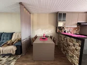 Sala de estar, sala de jantar e cozinha em conceito aberto, tornando o ambiente bem ventilado, com praticidade e conforto